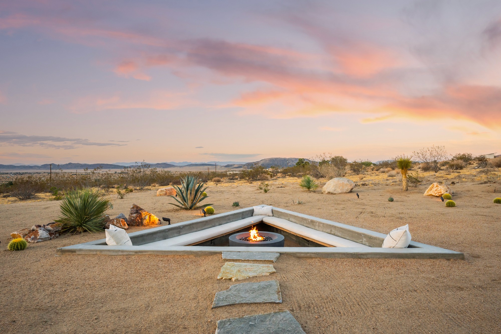 Built as a desert retreat, Mojave Villa provides a tastefully crafted interior, designed to capture the essence of the community, with outside amenities built for any occasion. Secluded, romantic, cathartic and comforting - Mojave Villa sits on an elevated hill in an exclusive Joshua Tree community.